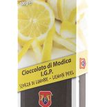 Modica chocolate I.G.P. with Lemon Peel, where the sour taste of lemon, combined with the sweetness of the sugar grains and the pungent flavor of the cocoa mass, create a unique mix of flavors.