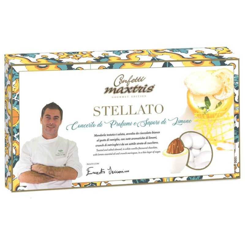 Dall'esperienza dei Maestri Confettieri Maxtris e dall'estro di Ernesto Iaccarino, Chef Stellato del Don Alfonso 1980, un confetto unico e inimitabile: il Maxtris Stellato Concerto di Profumi e Sapori di Limone.