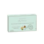 Deliziosi confetti di mandorla tostata ricoperta da cioccolato bianco al gusto di pistacchio e avvolta da un sottile strato di zucchero.
