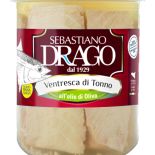 Pregiati e delicatissimi tranci di Ventresca di Tonno Rosso, preparati artigianalmente con il migliore tonno rosso del Mediterraneo.