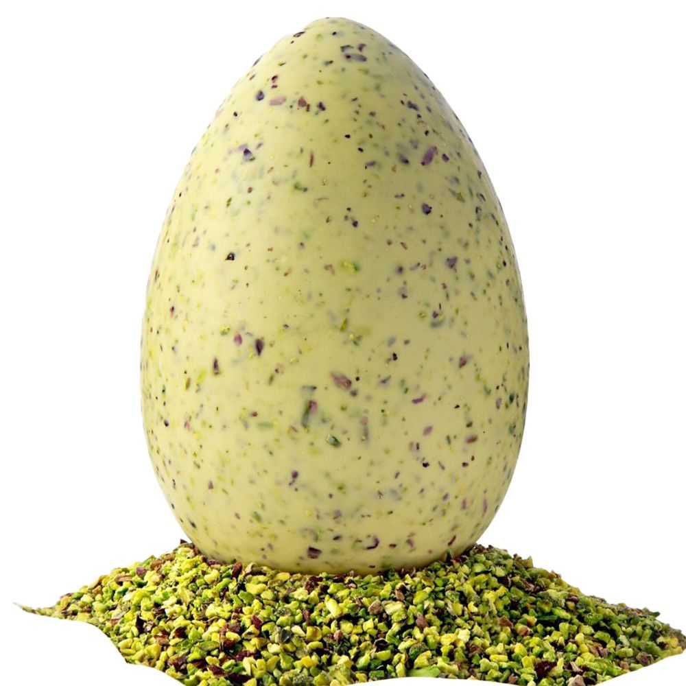 Un Uovo di Pasqua molto goloso, grazie all'unione tra il cioccolato bianco e la granella di pistacchio, un piacevole contrasto che saprà conquistare il tuo palato con tutta la sua dolcezza.