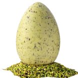 Tasse incluseUovo di Pasqua croccante fatto con finissimo Cioccolato Bianco e Granella di Pistacchio.